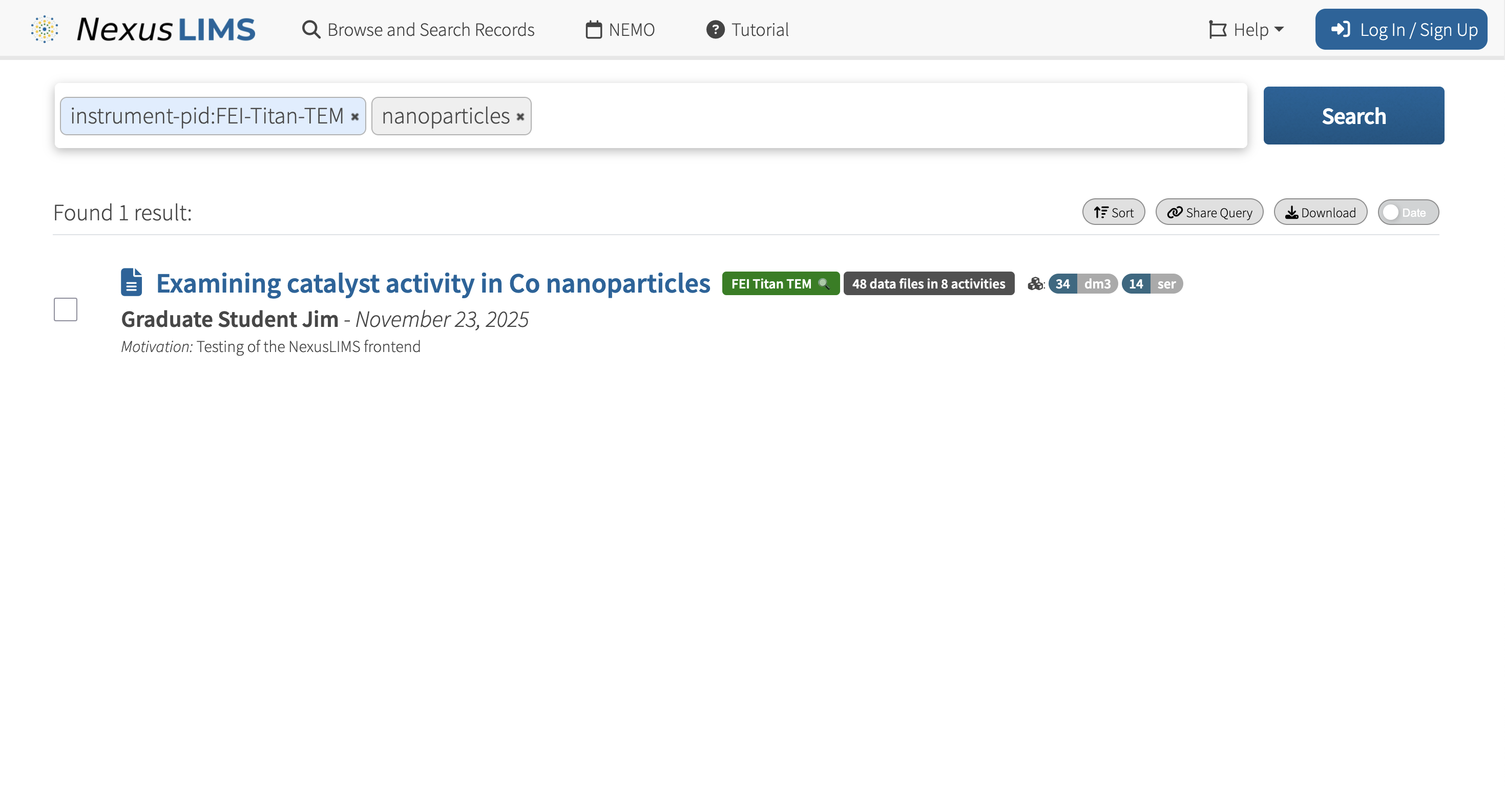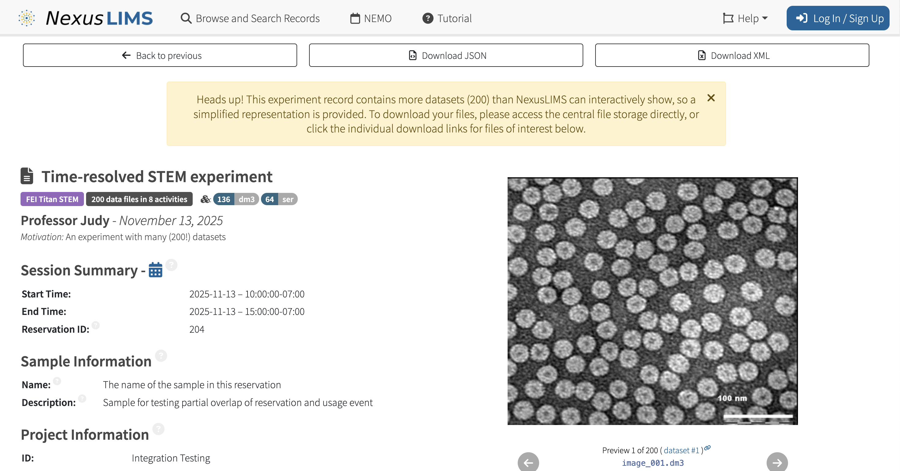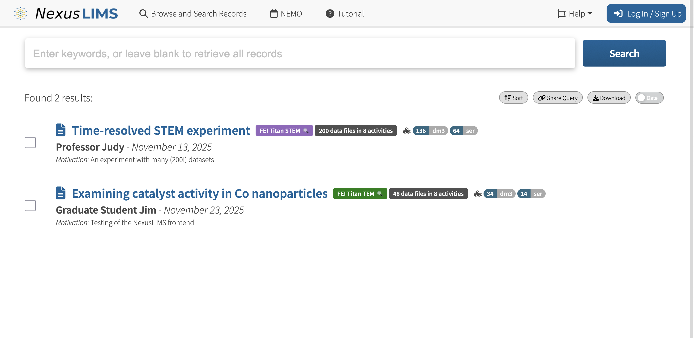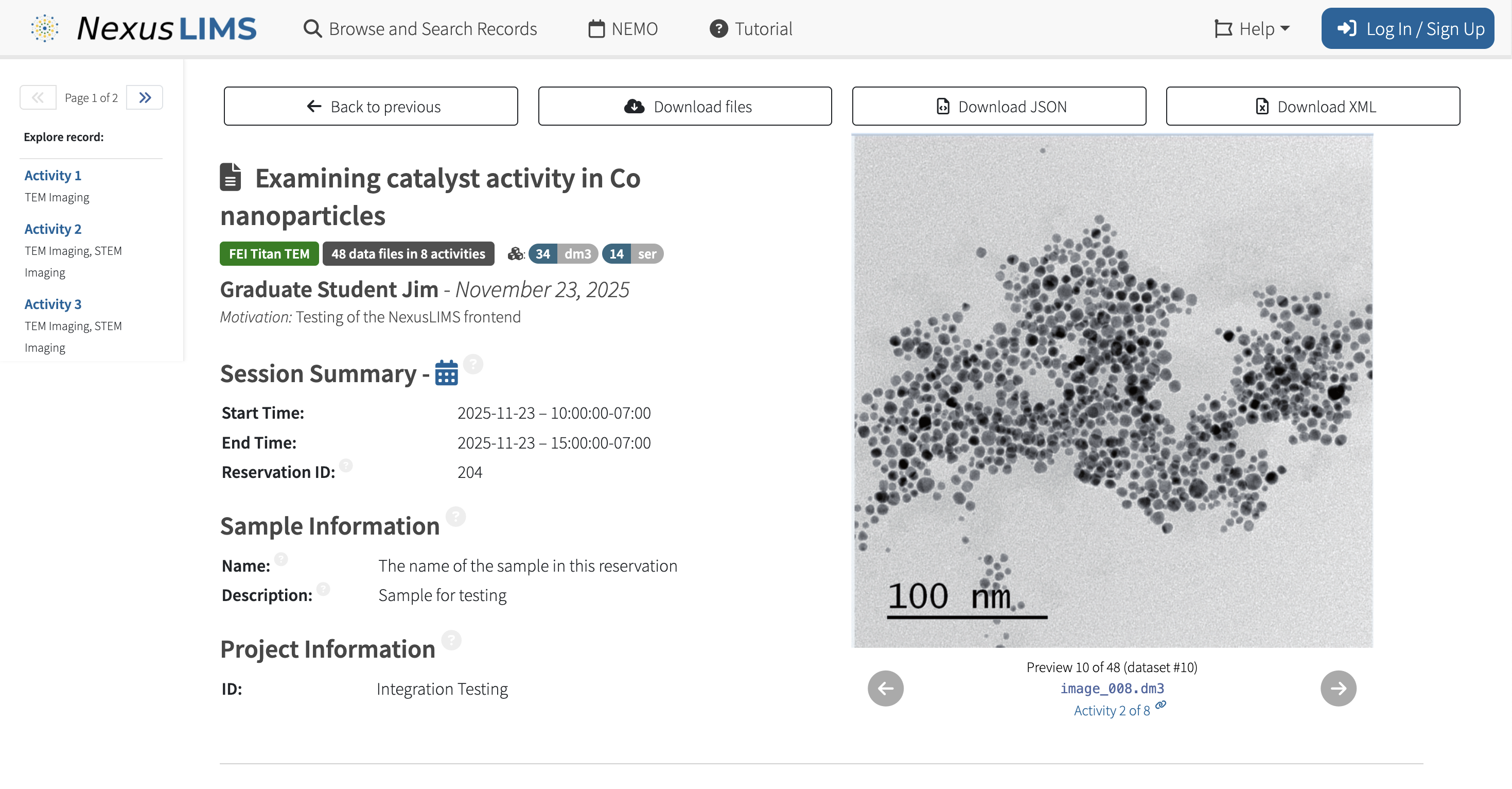 This gallery showcases the NexusLIMS-CDCS web interface, demonstrating key features and workflows.